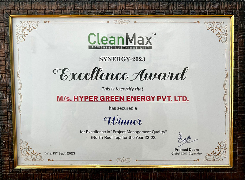 1st Place in Project Quality & Safety by CleanMax Synergy